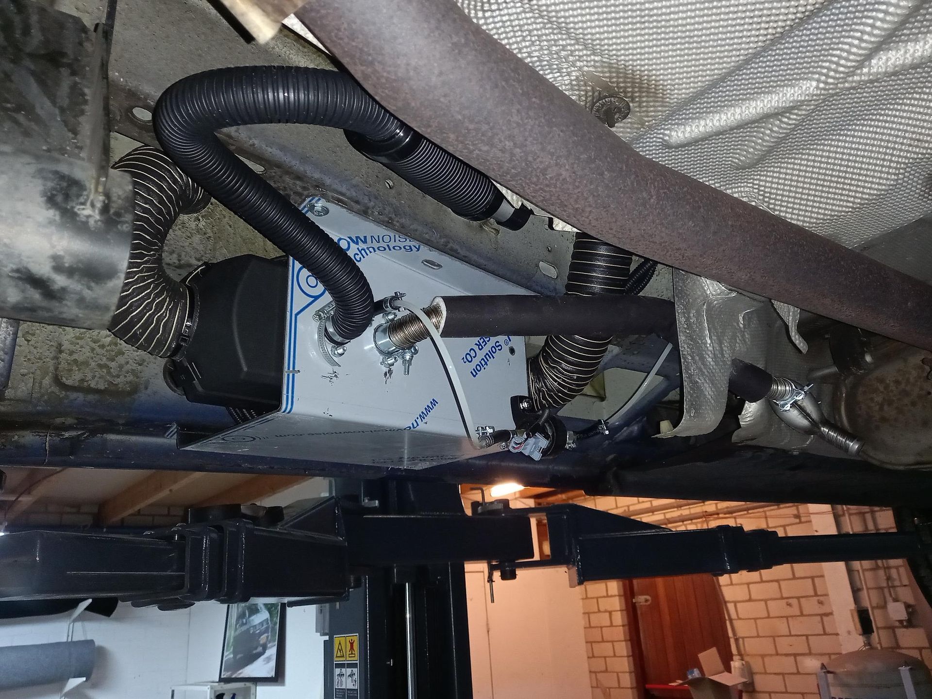 De kachel unit wordt onder de bus geplaatst in een RVS plaathouder. Dit is de originele fabrieksplek voor de standkachel. Bespaart lekker veel ruimte en is praktisch niet hoorbaar.